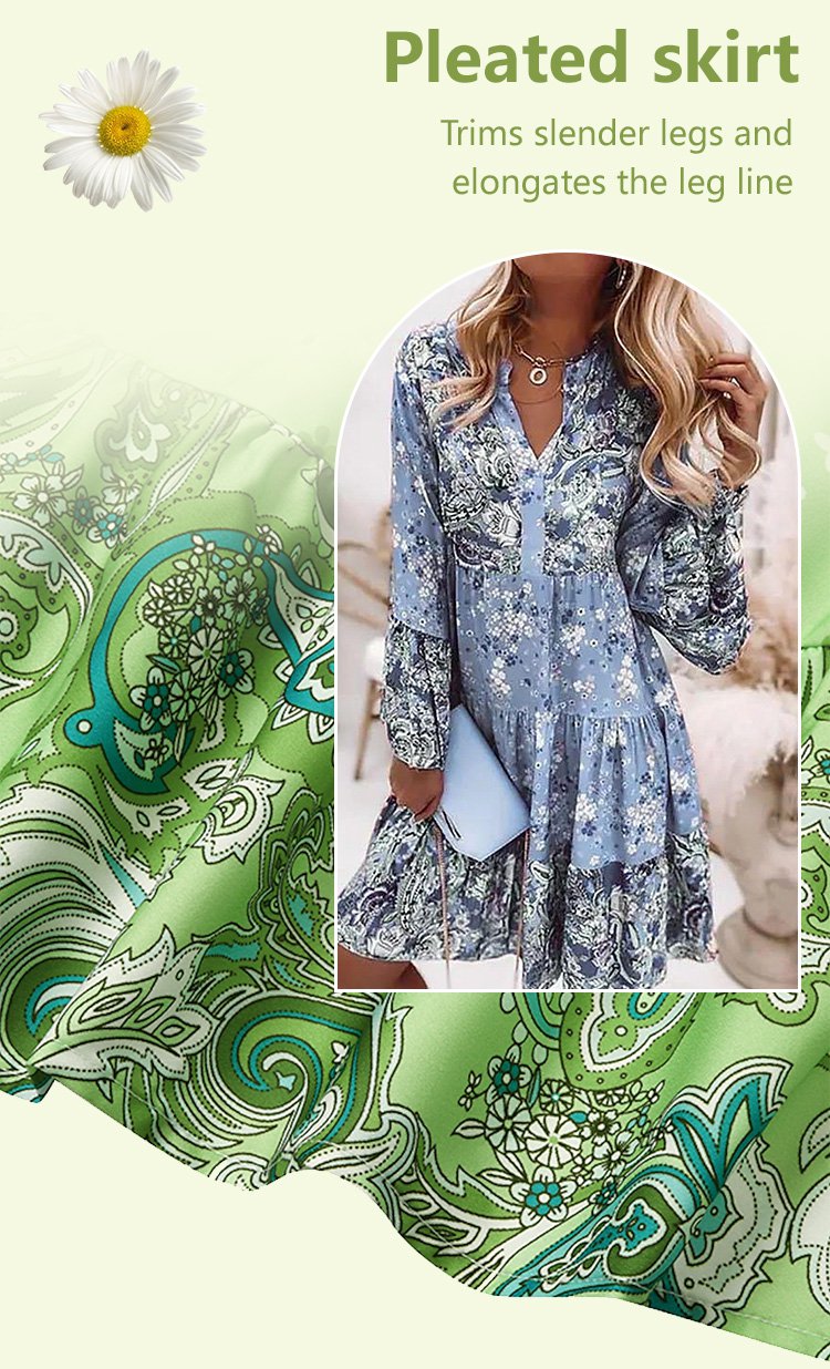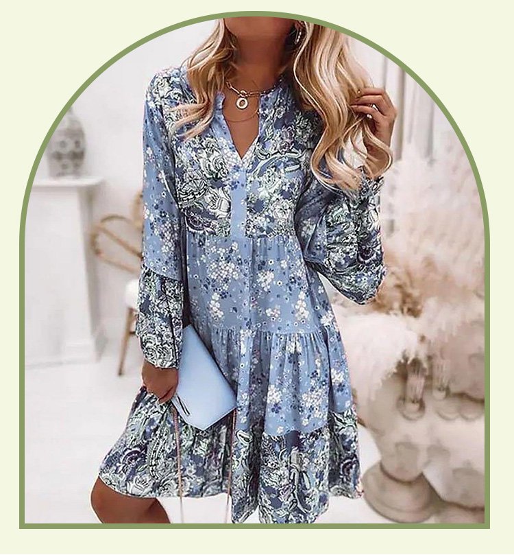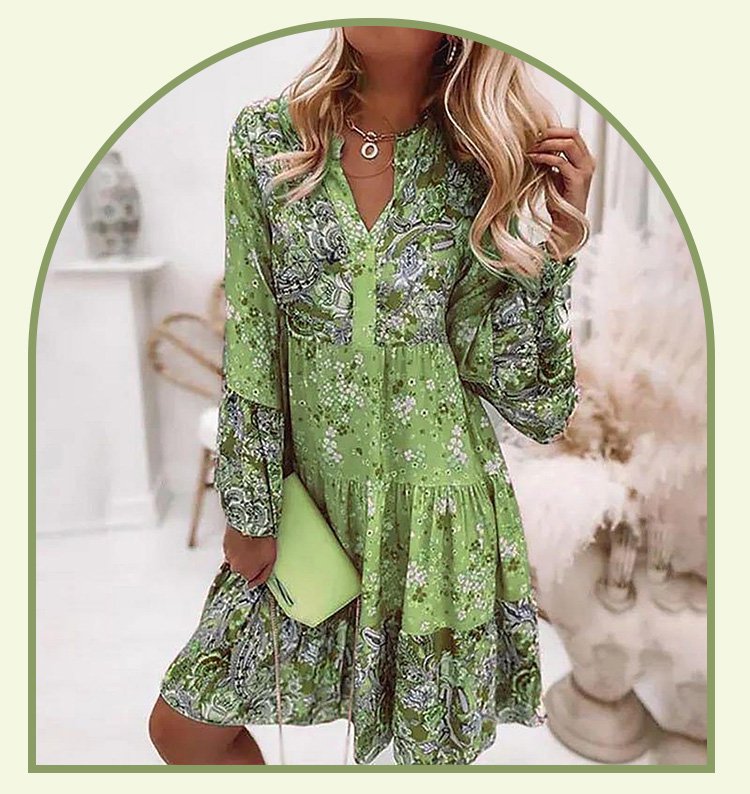 Women's V-Neck Bell Sleeve Swing Dress
