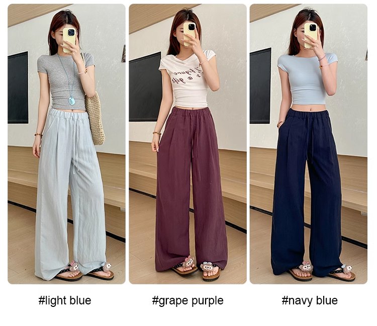 [Light and breathable] Tencel linen thin wide-leg pants
